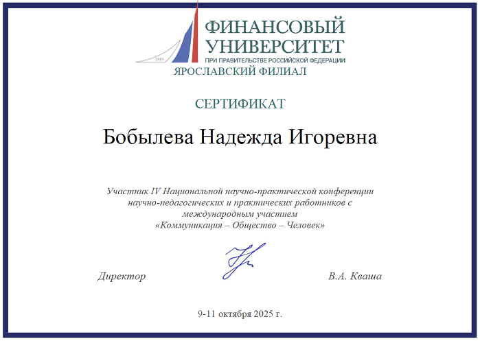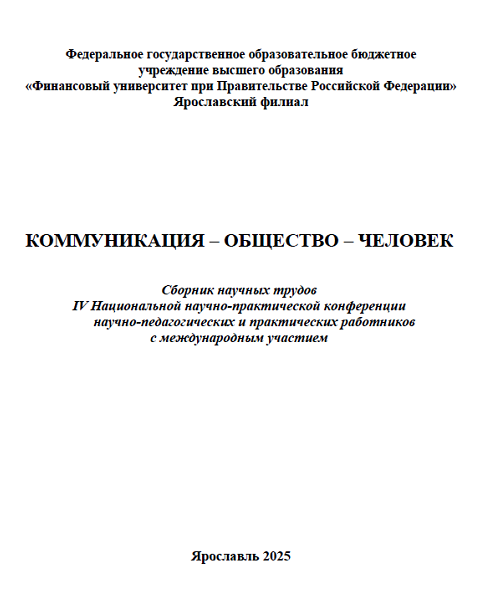 Коммуникация – общество – человек : Сборник научных трудов IV Национальной научно-практической конференции научно-педагогических и практических работников с международным участием, Ярославский филиал Финуниверситета , 09–11 октября 2025 года. – Ярославль: Финансовый университет при Правительстве РФ, 2025. – 476 с. – ISBN 978-5-605-40591-7. – EDN NDNBCY.